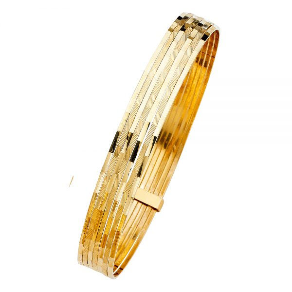 14K Yellow Gold Design Bangle Bracelet, 1mm, 1.8 Grams