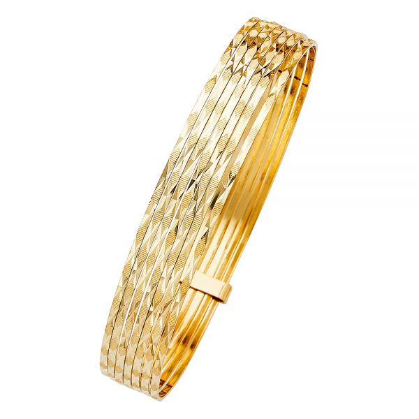 14K Yellow Gold Textured Design Bangle Bracelet, 5mm, 4.2 Grams