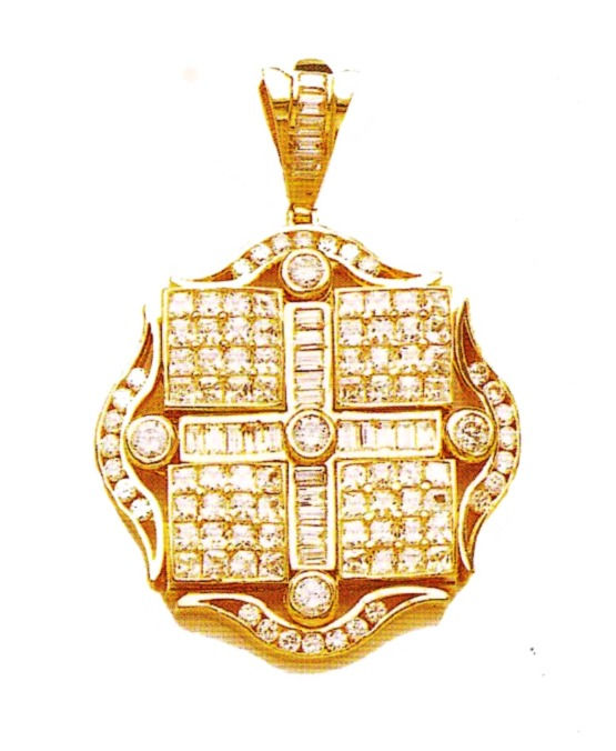 10K Yellow Gold Diamond CZ Pendant, 30.2 Grams, 2.69in (Large)