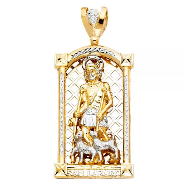 14K Two Tone Lazarus Religious Pendant, 32.5 Grams, 3.65 in (Large)
