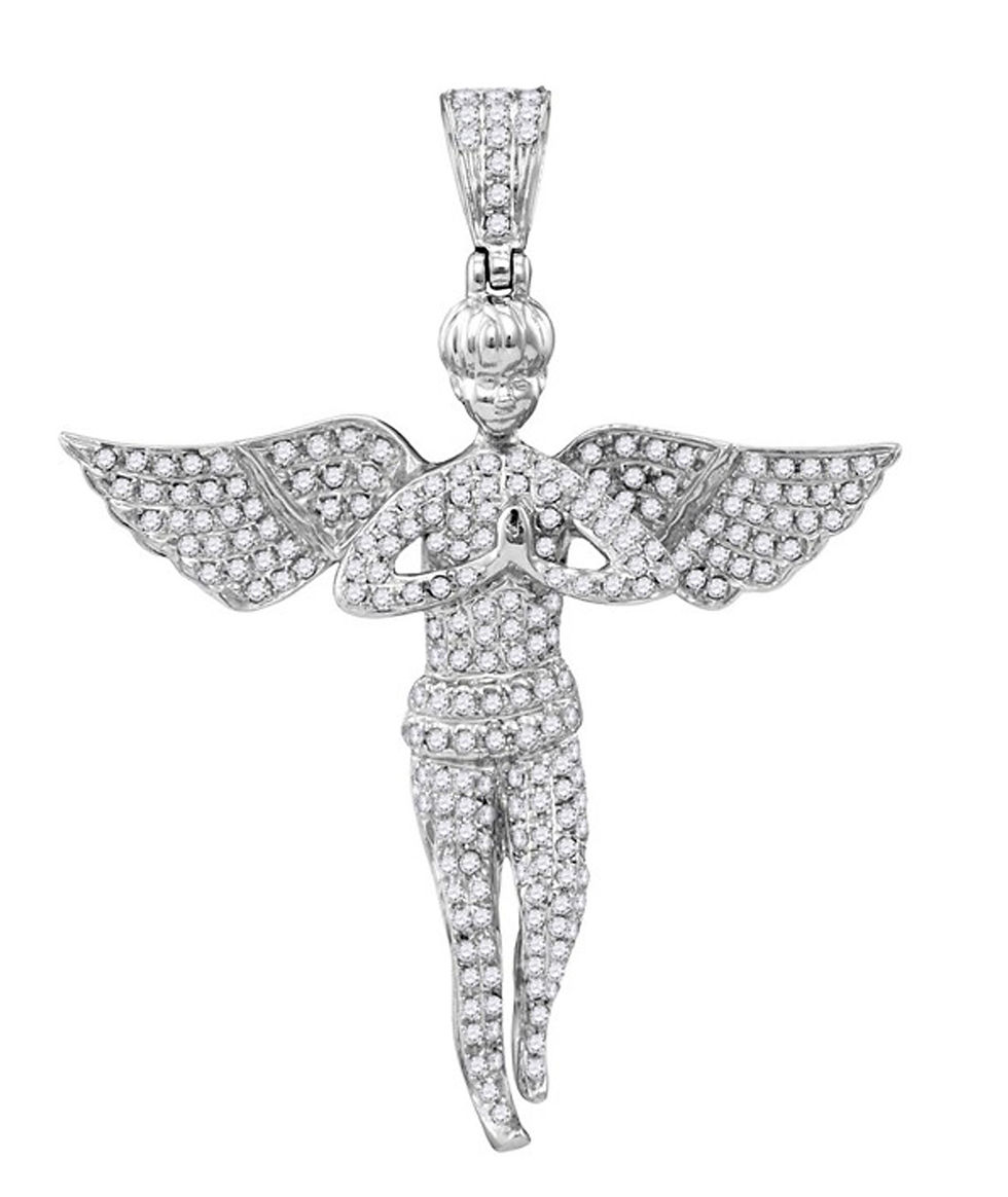 10K White Gold 1 1/4 CTW Diamond Angel Charm 2.5 in